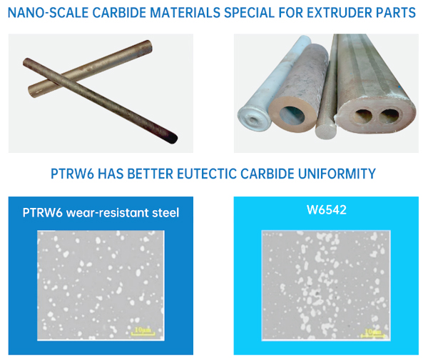 PTRW6 ULTRAFINE GRAIN WEAR-RESISTANT STEELTHIS MATERIAL ADOPTS THE ADVANCED MULTI-SIDE POWER TORSIONAL ROLLING(PTR) PRODUCTION PROCESS. THE METAL STRUCTURE CAN PRODUCE SUBMICRONGRAINS AND NANO-SCALE CARBIDES, WHICH CAN IMPROVE THE WEAR RESISTANCEBY 50%-120%, WITH HIGHER STRENGTH AND BETTER TOUGHNESS, AND IS SUITABLEFOR VARIOUS WEAR CONDITIONS