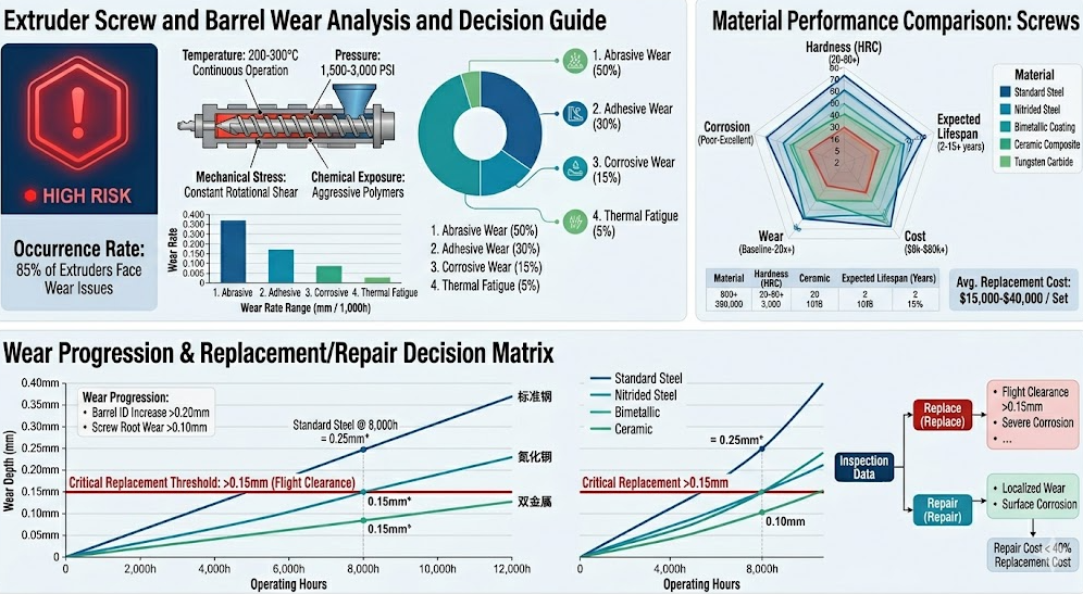 Occurrence Rate: 85% of extruders experience screw/barrel wear issues