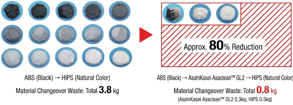• The Shop-Floor Reality: Standard commodity resins (like bare PE or PP) have low viscosity. They simply don’t have the “scrubbing power” to drag out stubborn colorants hiding in the dead zones of the screw.